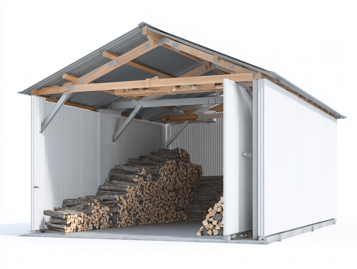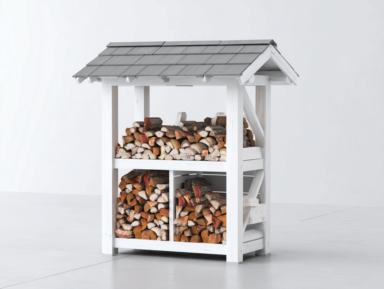 Porte bûches bois peint 120x45x160 cm - Blanc - Style extérieur fonctionnel